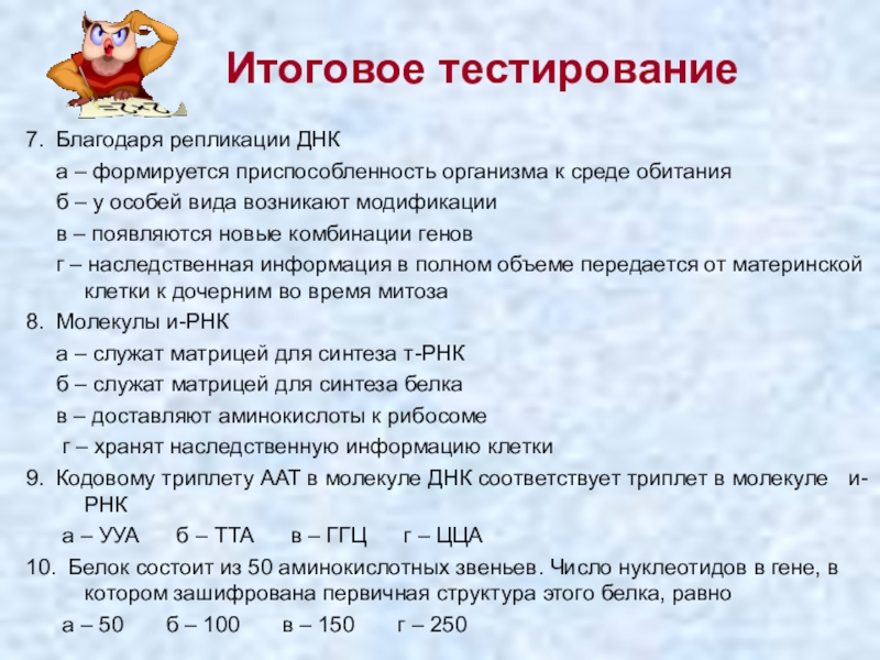 г – наследственная информация в полном объеме передается от материнской клетки к дочерним во время митоза