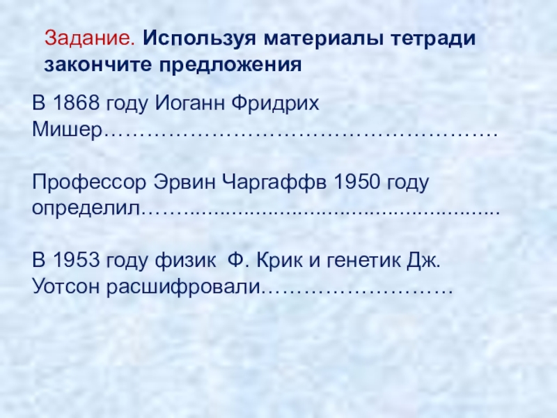 Слайд 25В 1868 году Иоганн Фридрих Мишер……………………………………………….