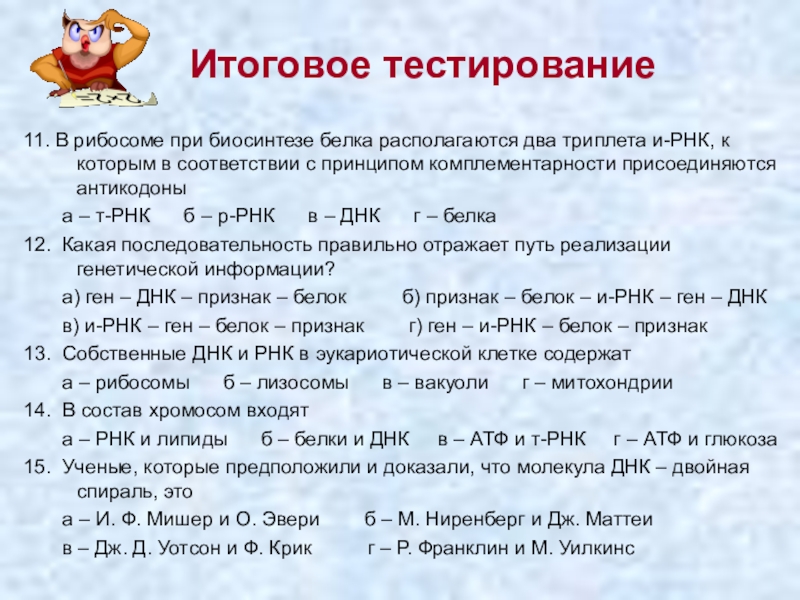 а – т-РНК б – р-РНК в – ДНК г – белка