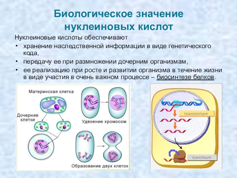 ее реализацию при росте и развитии организма в течение жизни в виде участия в очень важном процессе – биосинтезе белков.