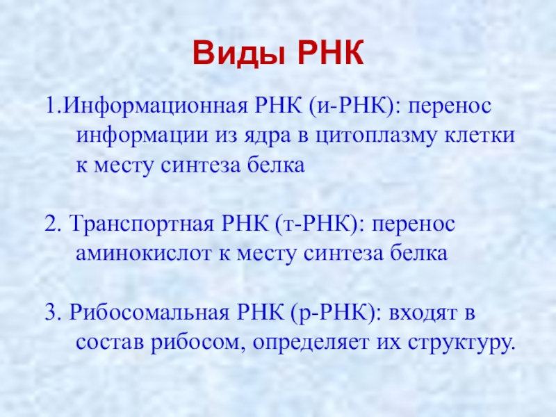 1.Информационная РНК (и-РНК): перенос информации из ядра в цитоплазму клетки