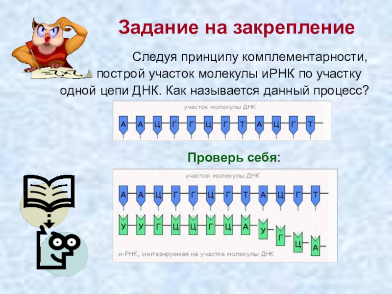 2. Постройте участок второй цепочки ДНК, следуя принципу комплементарности.