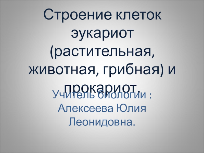 Слайд 1Строение клеток эукариот (растительная, животная, грибная) и прокариот.
