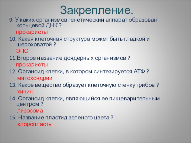 9. У каких организмов генетический аппарат образован кольцевой ДНК ?
