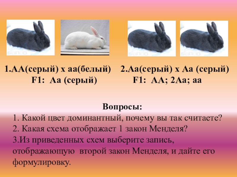 3.Из приведенных схем выберите запись, отображающую второй закон Менделя, и дайте его формулировку.