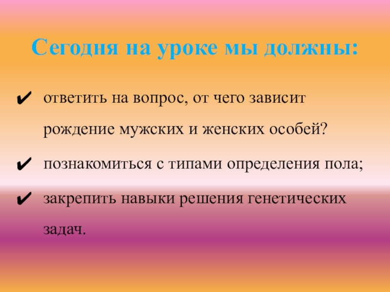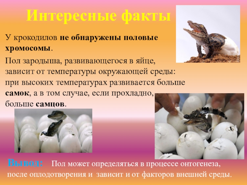 Вывод: Пол может определяться в процессе онтогенеза, после оплодотворения и зависит и от факторов внешней среды.