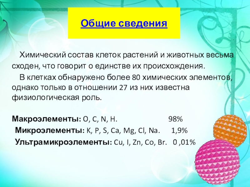 В клетках обнаружено более 80 химических элементов, однако только в отношении 27 из них известна физиологическая роль.