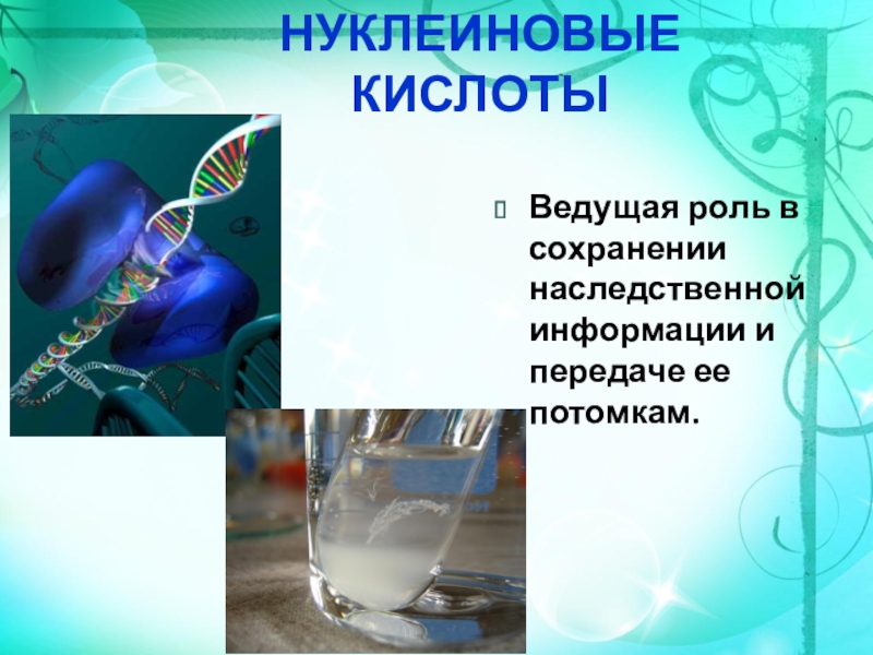 Ведущая роль в сохранении наследственной информации и передаче ее потомкам.