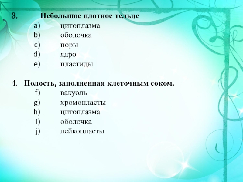 8. Бесцветное вязкое вещество, заполняющее клетку