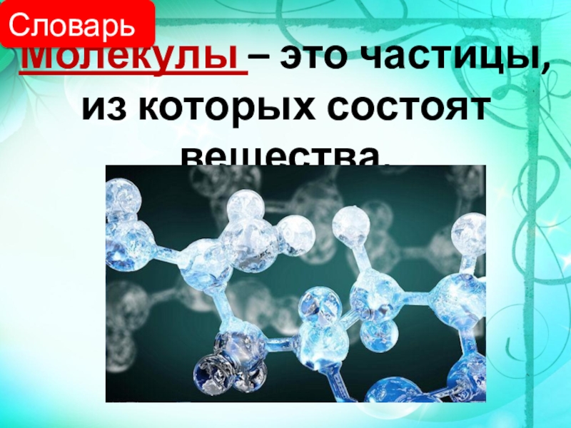 Слайд 18Молекулы – это частицы, из которых состоят вещества.