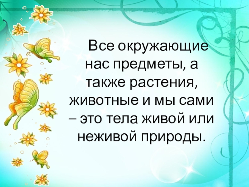 Слайд 9 Все окружающие нас предметы, а также растения, животные и