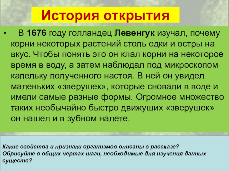 Какие свойства и признаки организмов описаны в рассказе?