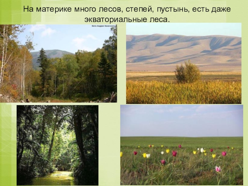 На материке много лесов, степей, пустынь, есть даже экваториальные