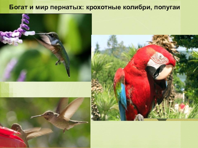 Слайд 38Очень много пернатых – птица марабу, птица – секретарь, но самая