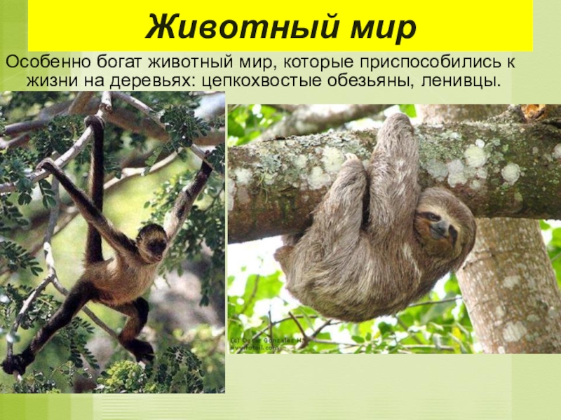 Особенно богат животный мир, которые приспособились к жизни на деревьях: