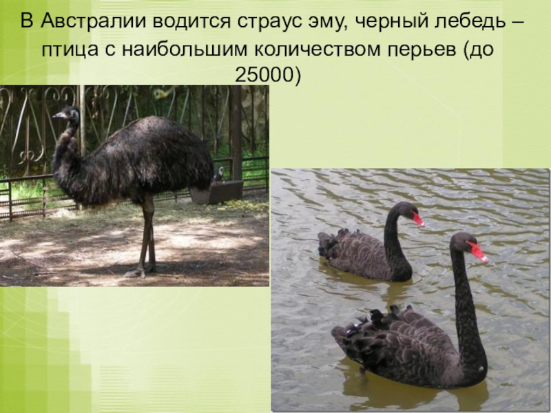 Слайд 71 В Австралии водится страус эму, черный лебедь – птица с