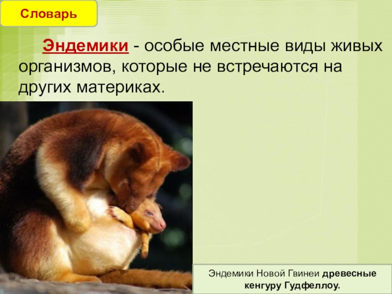 Слайд 6 Эндемики - особые местные виды живых организмов,