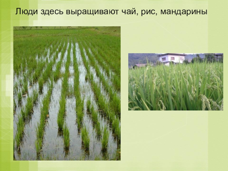 Слайд 15Люди здесь выращивают чай, рис, мандарины