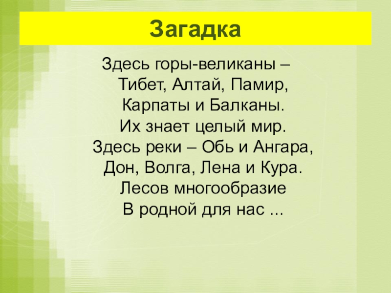 по площади равен Африке и Северной Америке вместе взятым. Протянулся он от Северного Ледовитого океана до экватора, поэтому природа в Евразии самая разнообразная.