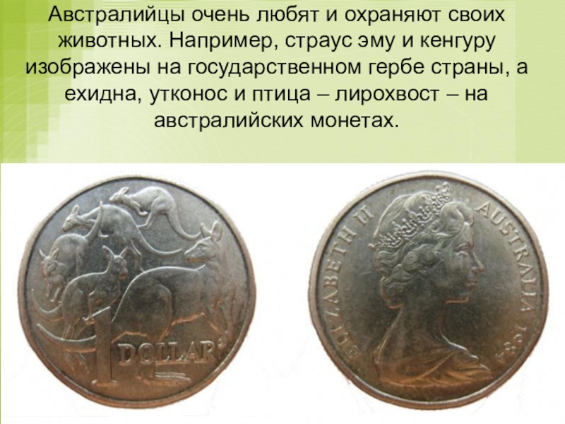 кенгуру изображены на государственном гербе страны, а ехидна, утконос и птица – лирохвост – на австралийских монетах.