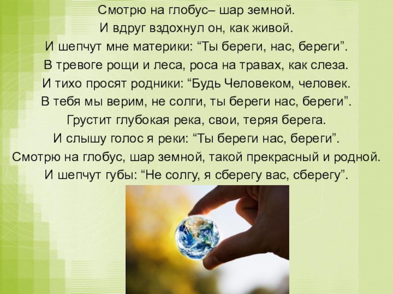 Смотрю на глобус, шар земной, такой прекрасный и родной.