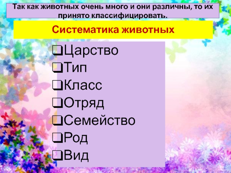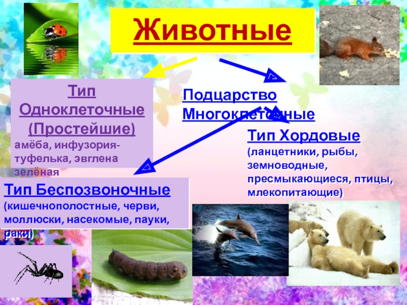 (ланцетники, рыбы, земноводные, пресмыкающиеся, птицы, млекопитающие)