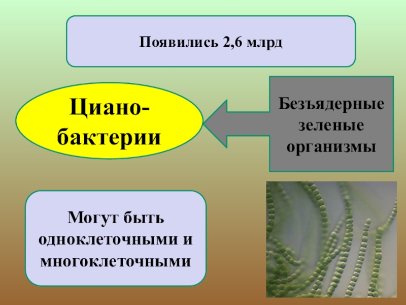 обуславливает разделение органического мира на растительный и животный. Первыми фотосинтезирующими организмами были прокариотические (доядерные) цианобактерии и сине-зеленые водоросли.