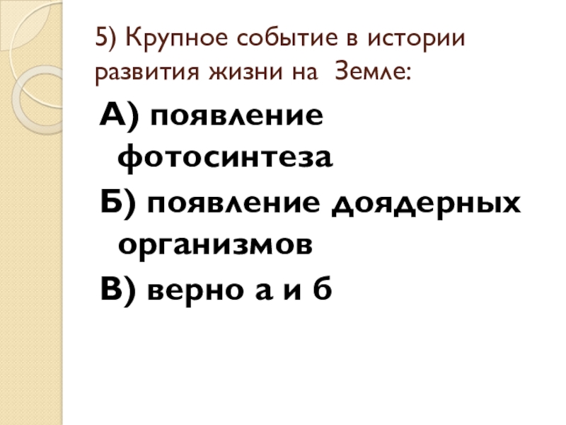 Слайд 535) Крупное событие в истории развития жизни на Земле: