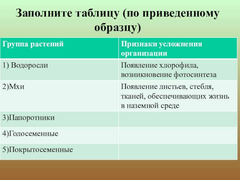 Слайд 55Заполните таблицу (по приведенному образцу)