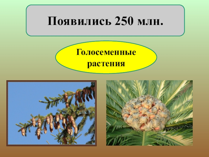 Слайд 41Голосеменные растения возникли около 345 млн. лет назад, когда климат на