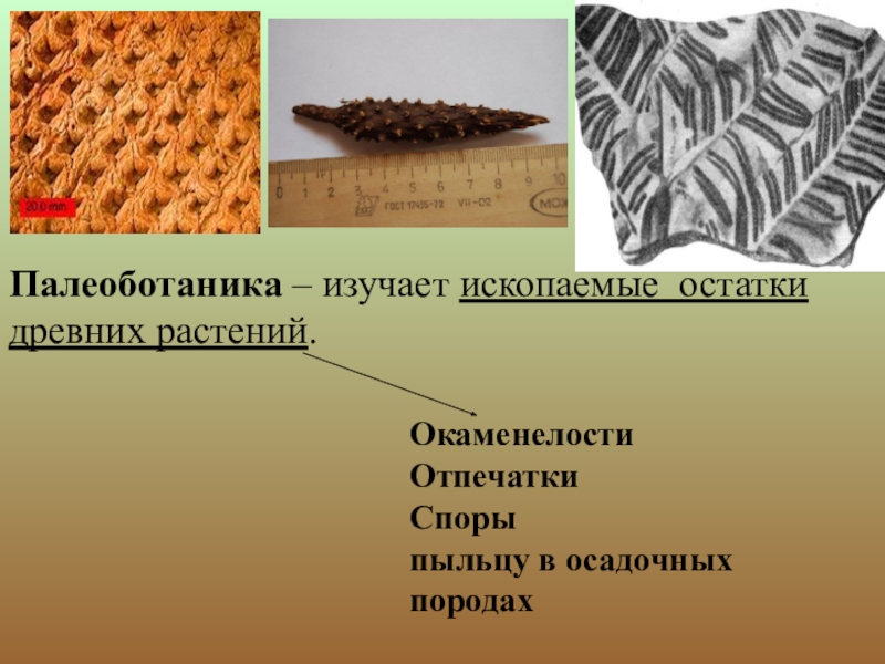Слайд 10Палеоботаника – изучает ископаемые остатки древних растений.