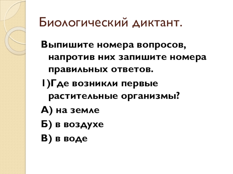 Выпишите номера вопросов, напротив них запишите номера правильных ответов.
