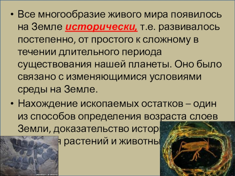 Слайд 7Все многообразие живого мира появилось на Земле исторически, т.е. развивалось постепенно,