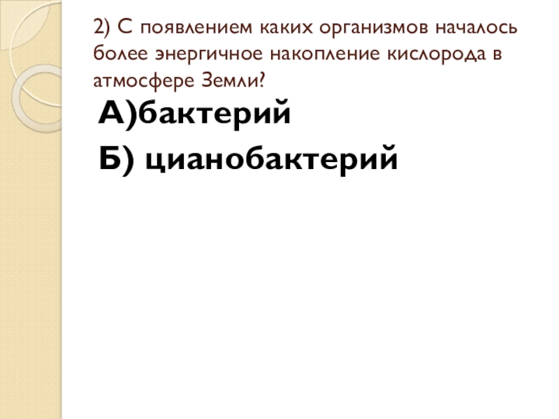 Слайд 502) С появлением каких организмов началось более энергичное накопление кислорода в