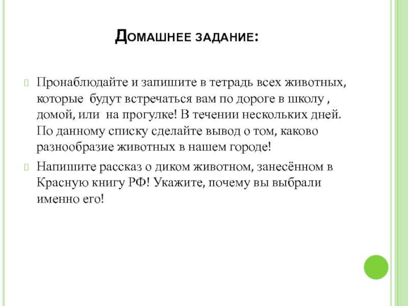 вам по дороге в школу , домой, или на прогулке! В течении нескольких дней. По данному списку сделайте вывод о том, каково разнообразие животных в нашем городе!