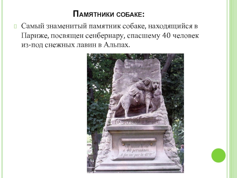 Самый знаменитый памятник собаке, находящийся в Париже, посвящен сенбернару, спасшему