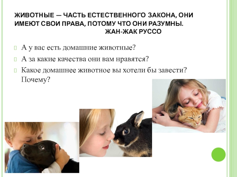 Слайд 2ЖИВОТНЫЕ — ЧАСТЬ ЕСТЕСТВЕННОГО ЗАКОНА, ОНИ ИМЕЮТ СВОИ ПРАВА, ПОТОМУ ЧТО