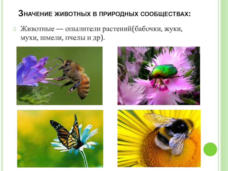 Животные — опылители растений(бабочки, жуки, мухи, шмели,