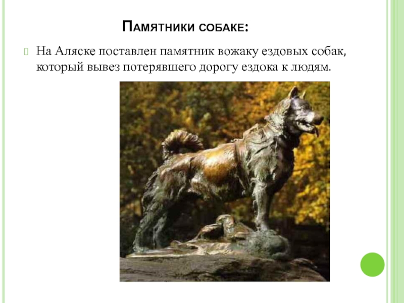 Есть памятники собаке-поводырю, собакам-пограничникам и тем, кто остался верен своим