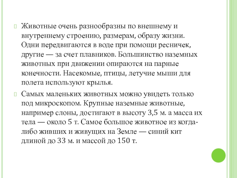 Слайд 21Животные очень разнообразны по внешнему и внутреннему строению, размерам, образу жизни.