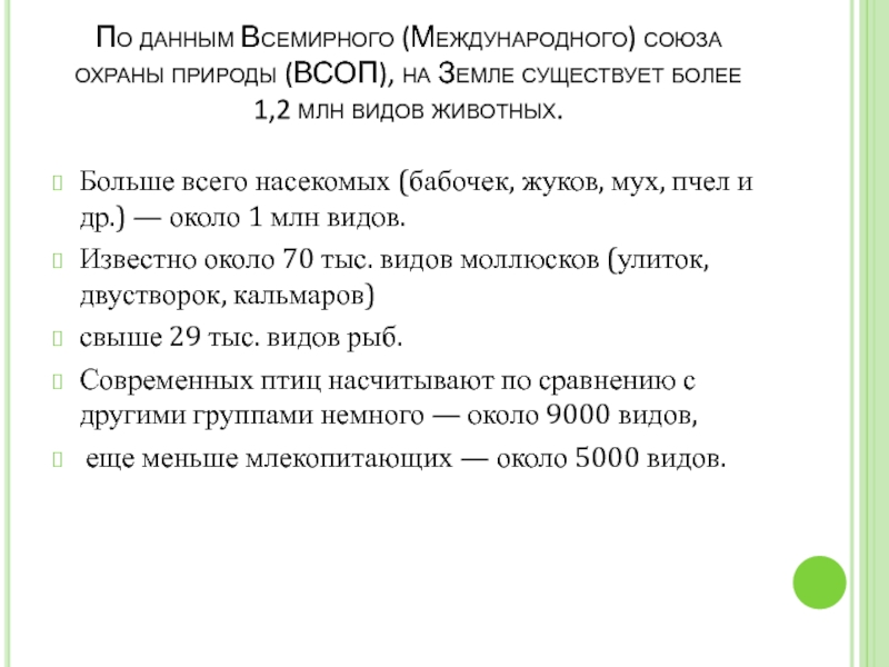 Слайд 18По данным Всемирного (Международного) союза охраны природы (ВСОП), на Земле существует