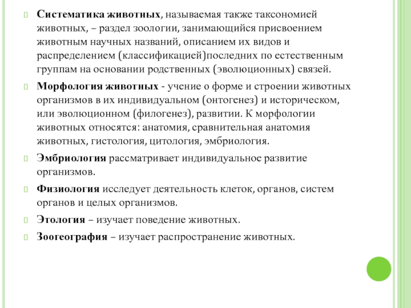 животным научных названий, описанием их видов и распределением (классификацией)последних по естественным группам на основании родственных (эволюционных) связей.