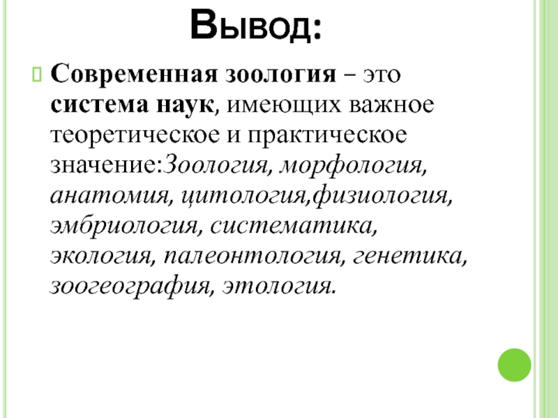 Современная зоология – это система наук, имеющих важное теоретическое и практическое значение:Зоология,