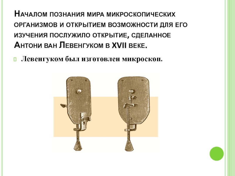 Слайд 6Началом познания мира микроскопических организмов и открытием возможности для его изучения