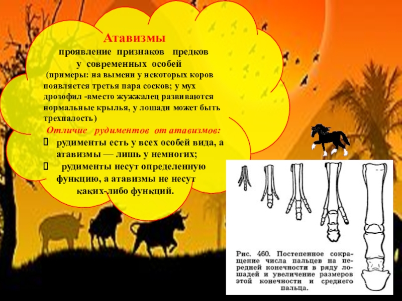 Слайд 42Наличие атавизмов признаков появляющихся у отдельных особей, существовавших у отдаленных предков