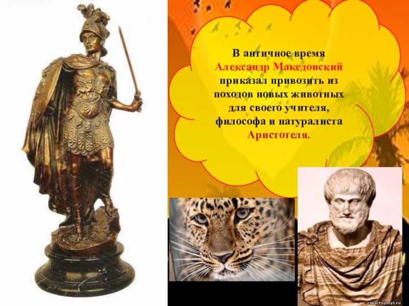 Слайд 4В античное время Александр Македонский приказал привозить из походов новых животных