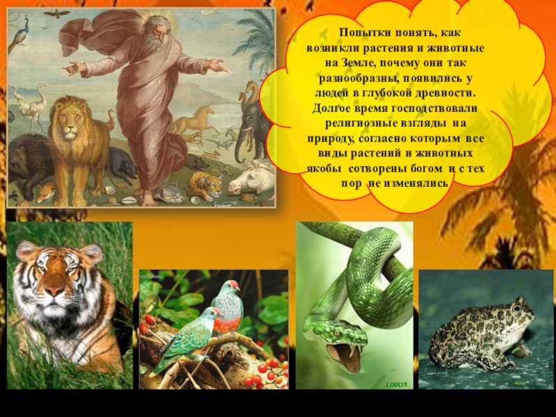 почему они так разнообразны, появились у людей в глубокой древности. Долгое время господствовали религиозные взгляды на природу, согласно которым все виды растений и животных якобы сотворены богом и с тех пор не изменялись