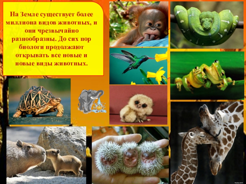 существует более миллиона видов животных, и они чрезвычайно разнообразны. До сих пор биологи продолжают открывать все новые и новые виды животных.