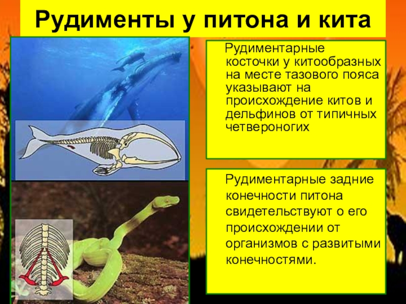 Рудиментарные задние конечности питона свидетельствуют о его происхождении от организмов с развитыми конечностями.
