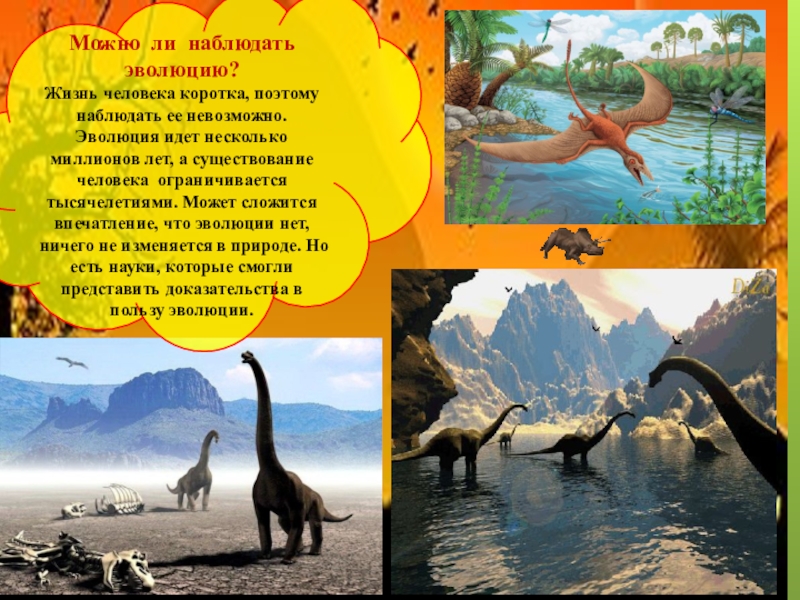 невозможно. Эволюция идет несколько миллионов лет, а существование человека ограничивается тысячелетиями. Может сложится впечатление, что эволюции нет, ничего не изменяется в природе. Но есть науки, которые смогли представить доказательства в пользу эволюции.